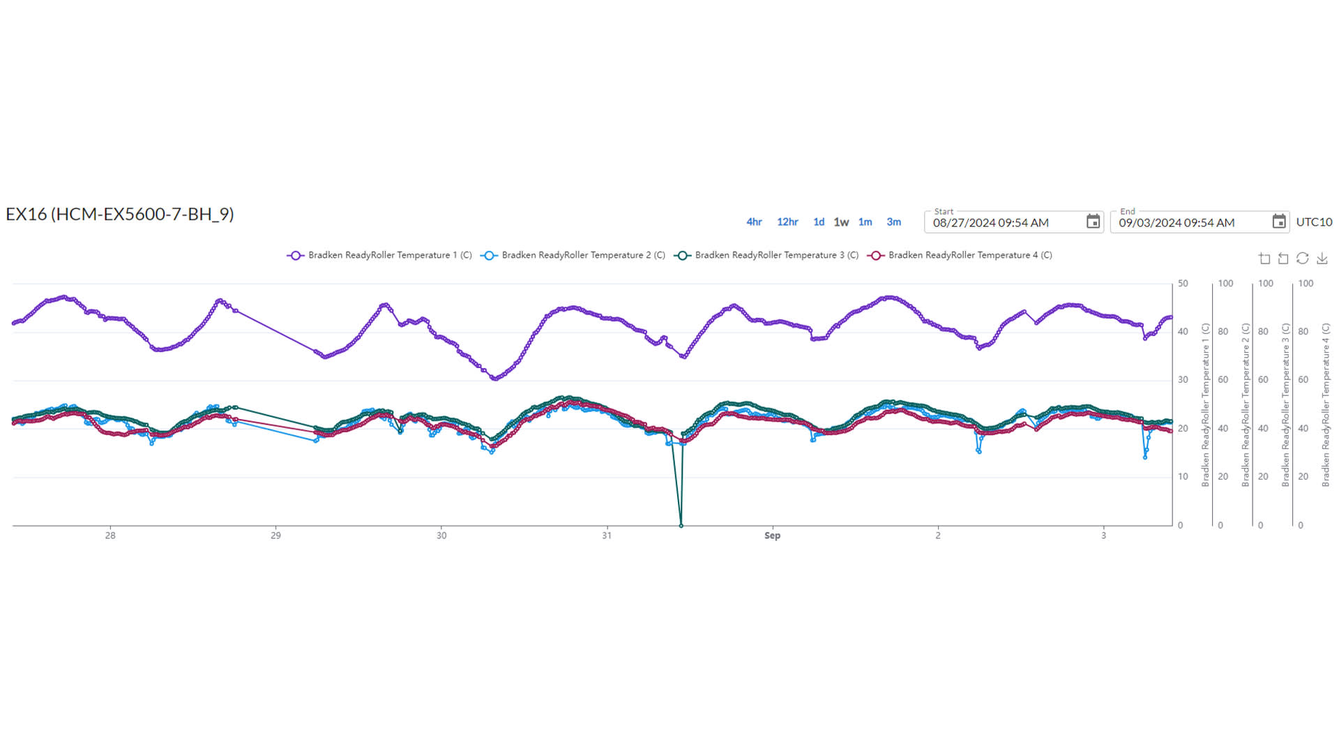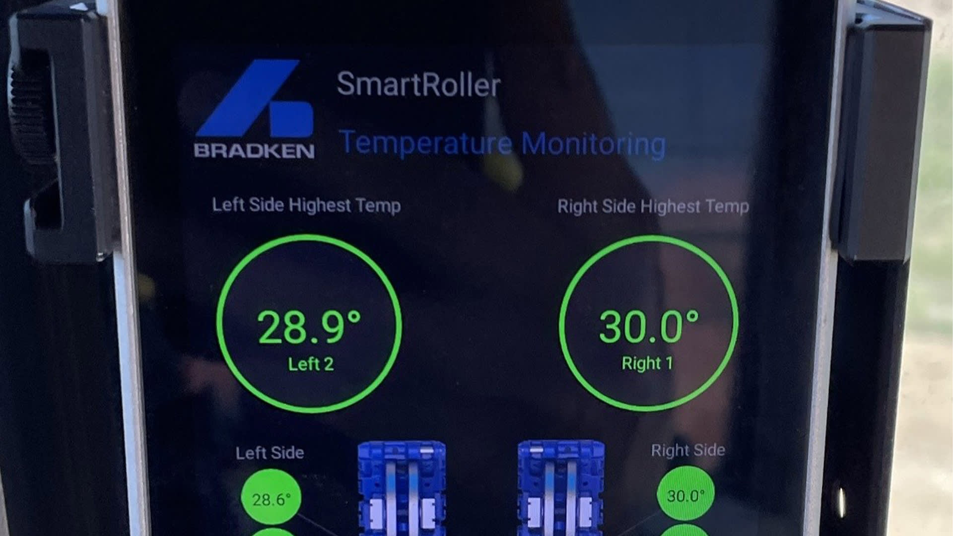 Autonomous, real-time temperature monitoring of lower rollers, with data delivered directly to the operator in-cabin.